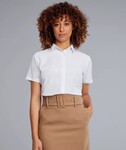 The Grace white uniform blouse has an elegant fly front, soft, feminine collar & feature back pleat.